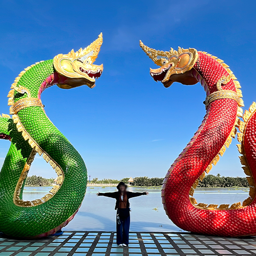 At Wat Saman Rattanaram, there were many other highlights, such as a large dragon statue and lotus-shaped objects.