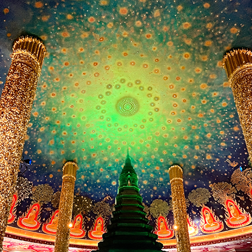 We first visited Wat Paknam Phasicharoen, a temple famous for its artistic ceiling mural.